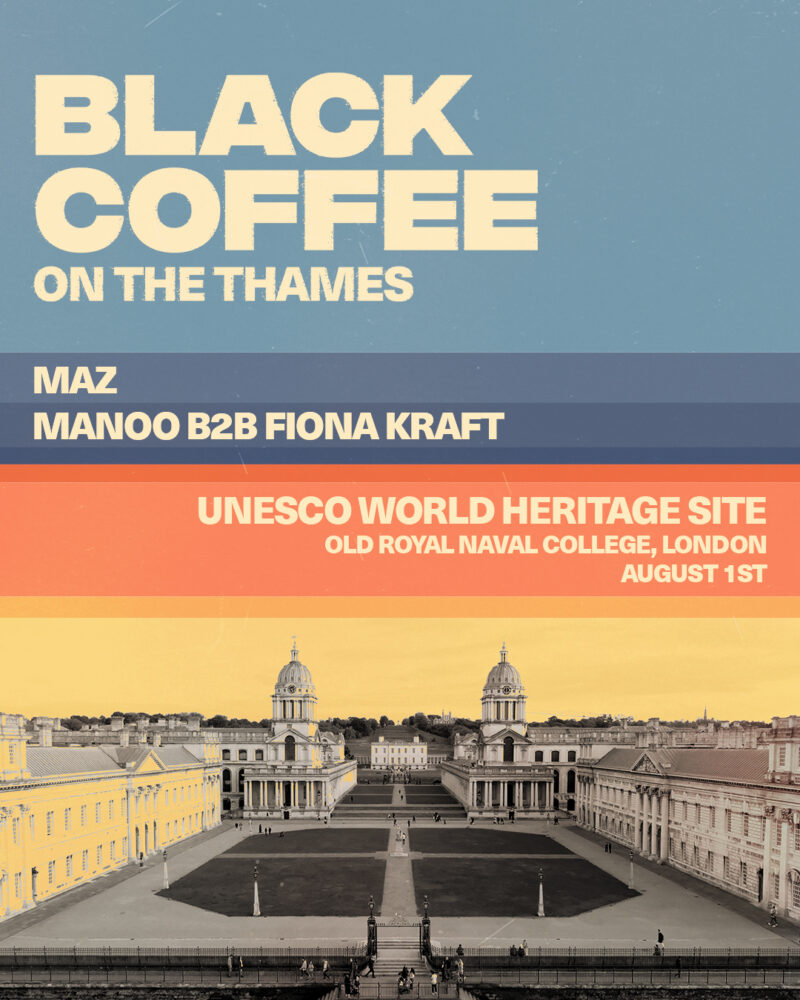 Black Coffee on the Thames is part of Labyrinth on the Thames — a six-date series transforming one of London’s most iconic cultural sites into a dancefloor with views across the river and skyline. Each show runs until 11pm, fusing sound, light, and architecture in a setting previously untouched by contemporary dance music.