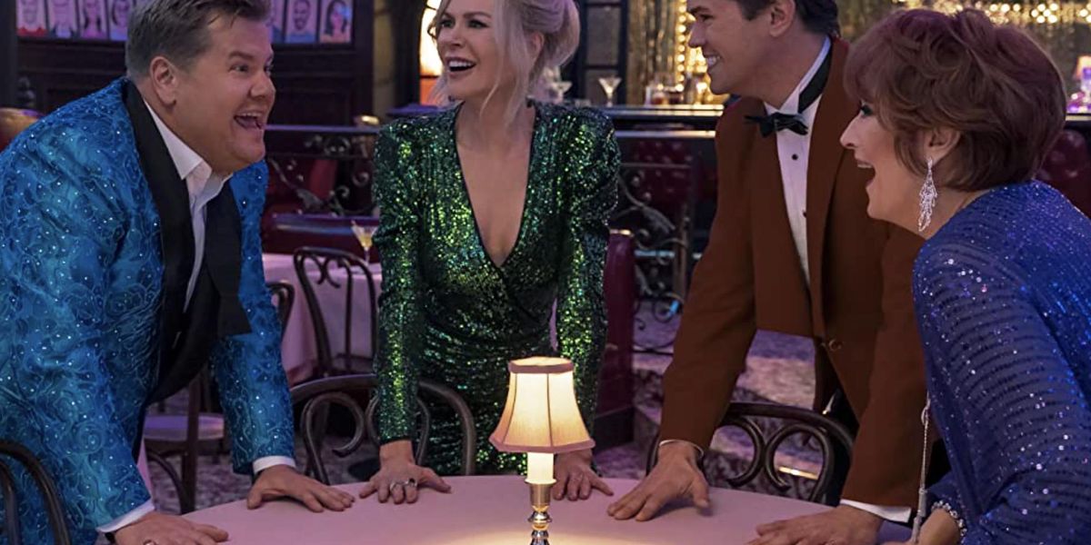 Facing the town's small-mindedness pushes Barry toward reconnecting with the family he left after coming out as a teenager while Dee Dee (Streep delicately mixing 110-proof narcissism with flickers of self-awareness) and Mr. Hawkins begin a flirtation at an Applebee's restaurant. Their slow journeys to self-improvement, along with the mean-girl melodrama surrounding Emma—whose girlfriend Alyssa (Ariana DeBose) has not come out to her mother Mrs. Greene—seem particularly Glee-ish in their sometimes rough mixture of sentiment and satire, only without any Lady Gaga dance numbers.