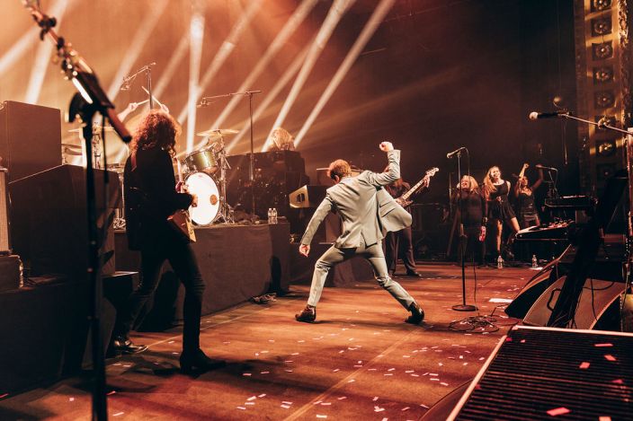 Thankfully, The Killers went there again at this show. They played like they were at Madison Square Garden. (That included turning the volume up to levels that could be felt in the Twin Cities suburbs.) Their rock-star posturing was not at all tempered. They struck power stances, stood on amplifiers during guitar solos, and tossed drumsticks into the audience. They shot confetti into the air not once, but twice. And that suited the songs, so many of them recognizable hits, which sounded as immense and undeniable as ever.
