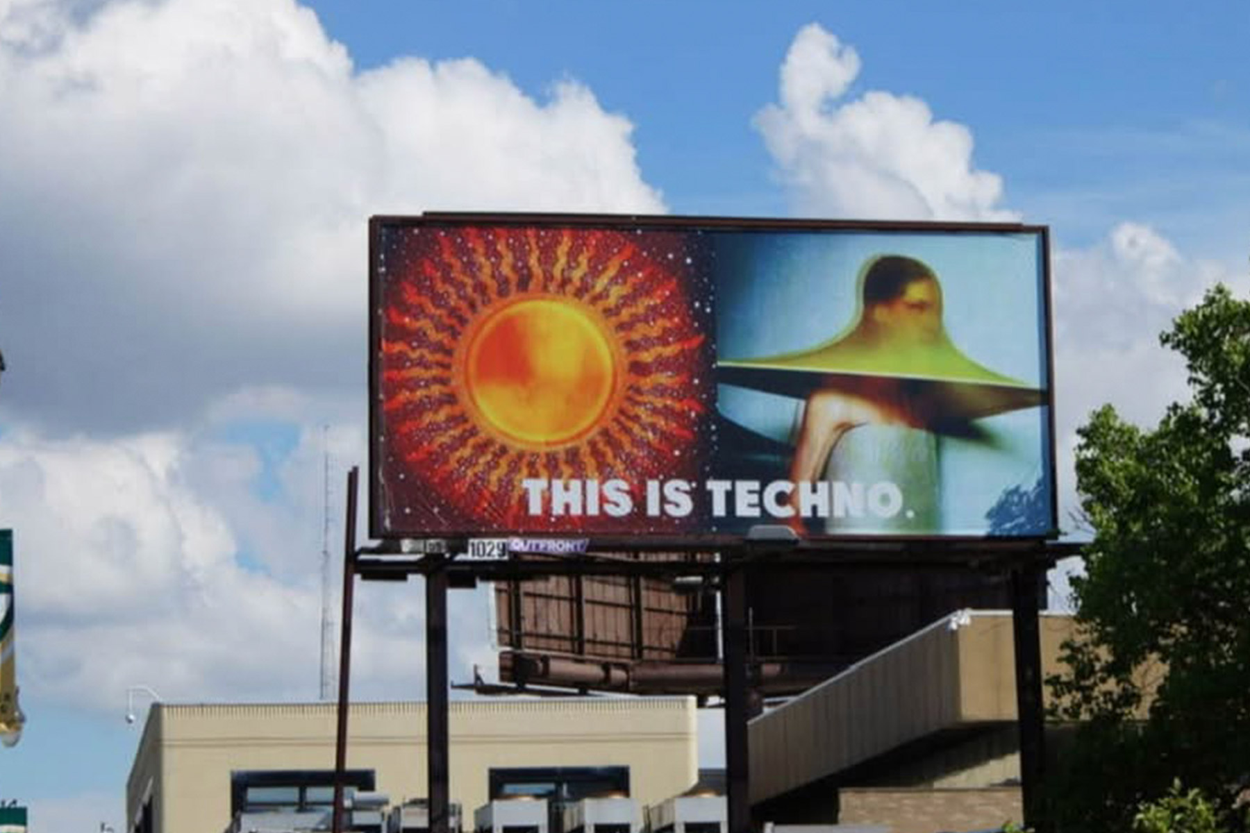 Located at key intersections throughout the city, the billboards present two futuristic visuals placed side by side. According to a statement from Mills, the intent is to ignite reflection and “sharpen our sense to detect what is Techno and what is not.”