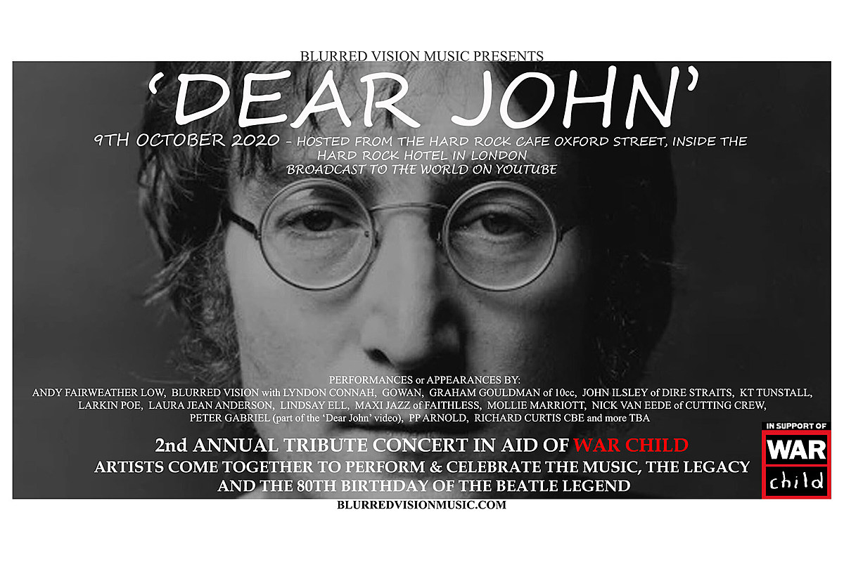 Organized by Blurred Vision frontman Sepp Osley, the virtual show will feature performances of songs from Lennon's catalog, and tributes to him, from KT Tunstall, Larkin Poe, Peter Gabriel, Richard Curtis CBE, Maxi Jazz of Faithless, Lindsay Ell, PP Arnold, Andy Fairweather Low, John Ilsley of Dire Straits, Graham Gouldman of 10cc, Lawrence Gowan of Styx, Nick Van Eede of Cutting Crew, Blurred Vision, Mollie Marriott, Laura Jean Anderson, and more.