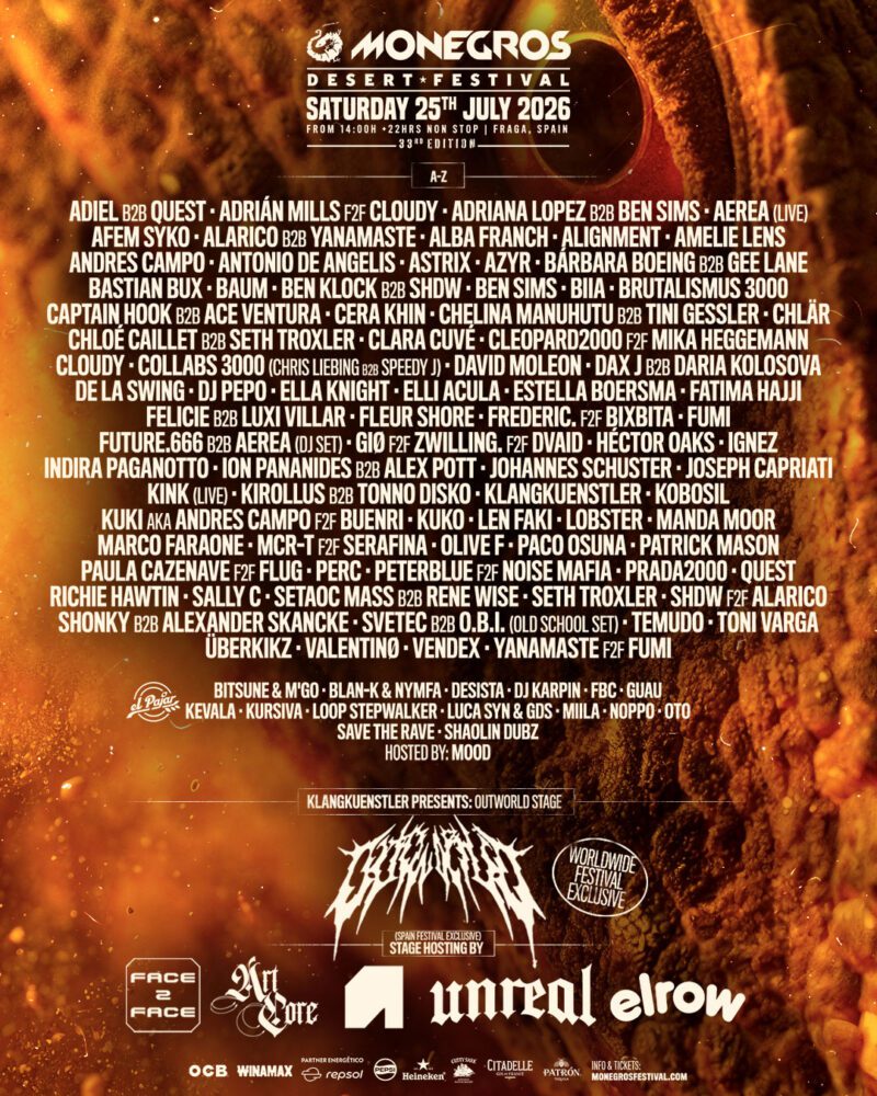 Monegros Desert Festival has confirmed the full lineup for its 2026 edition. The event returns to the desert of Fraga on July 25th with over 120 artists.