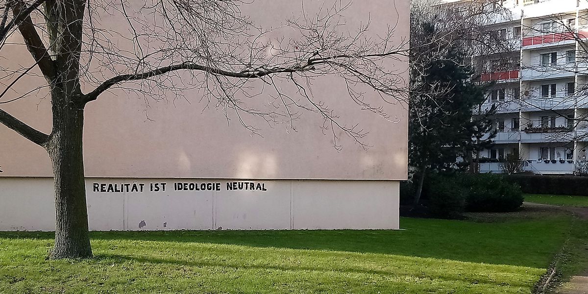Can it ever be possible again to read an innocence or neutrality in the small chapter of history called the Die Wende? With that question, I return to Hohenschönhausen to make a direct insitu intervention on the vast banks of blank prefab walls that the plattenbau offers. But I am quickly reminded that I am an invader. A resident who appears out of one apartment interrupts me in a clearly unapproving tone. He doesn't understand that my work, which reads 'Realität ist Ideologie neutral' against the backdrop of neutral grey slab concrete (above) has only the one purpose: to be a photographic record of itself. In half an hour the work is gone from sight, along with me. My work as an art intervention was only an exercise for other questions to emerge.