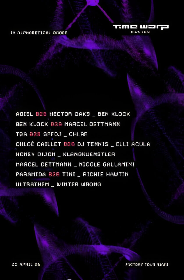 Time Warp will make its Miami debut on Saturday, April 25th, 2026, taking over three stages at Factory Town in Hialeah. The event marks the festival’s second U.S. edition, alongside its New York outpost.